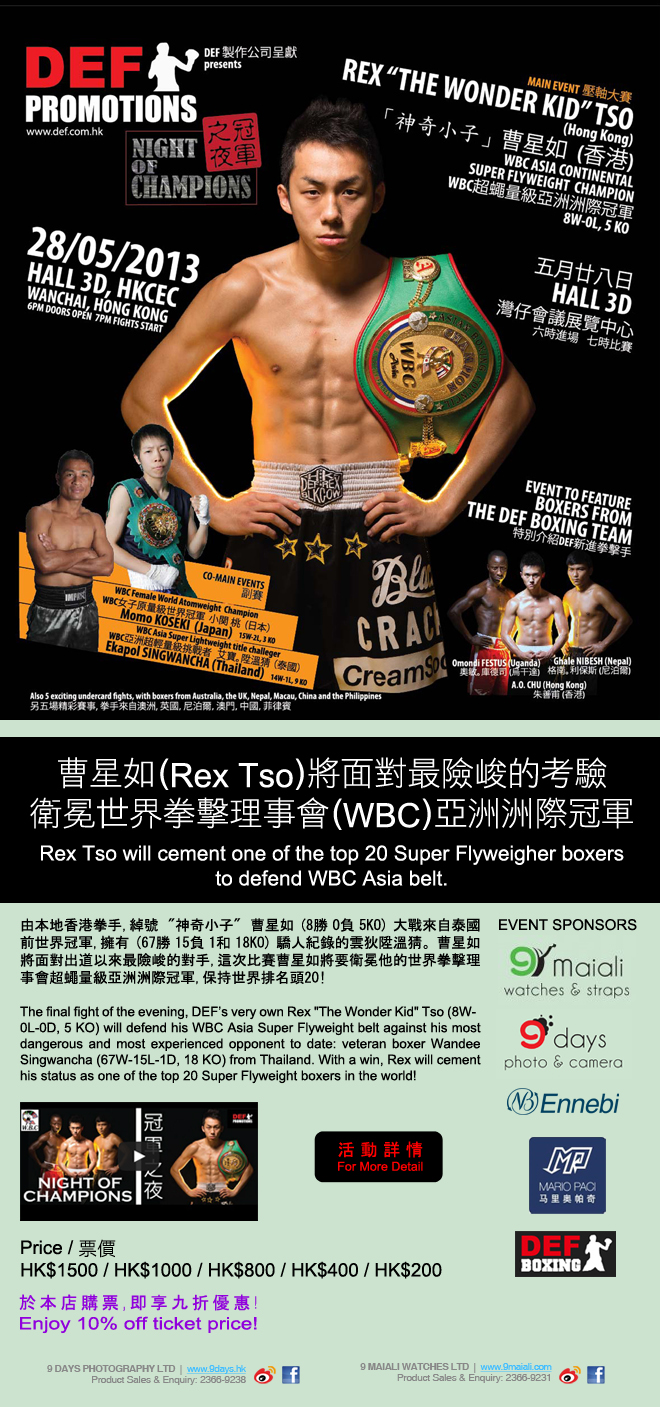 Rex Tso will cement one of the top 20 Super Flyweigh boxers to defend WBC Asia belt.