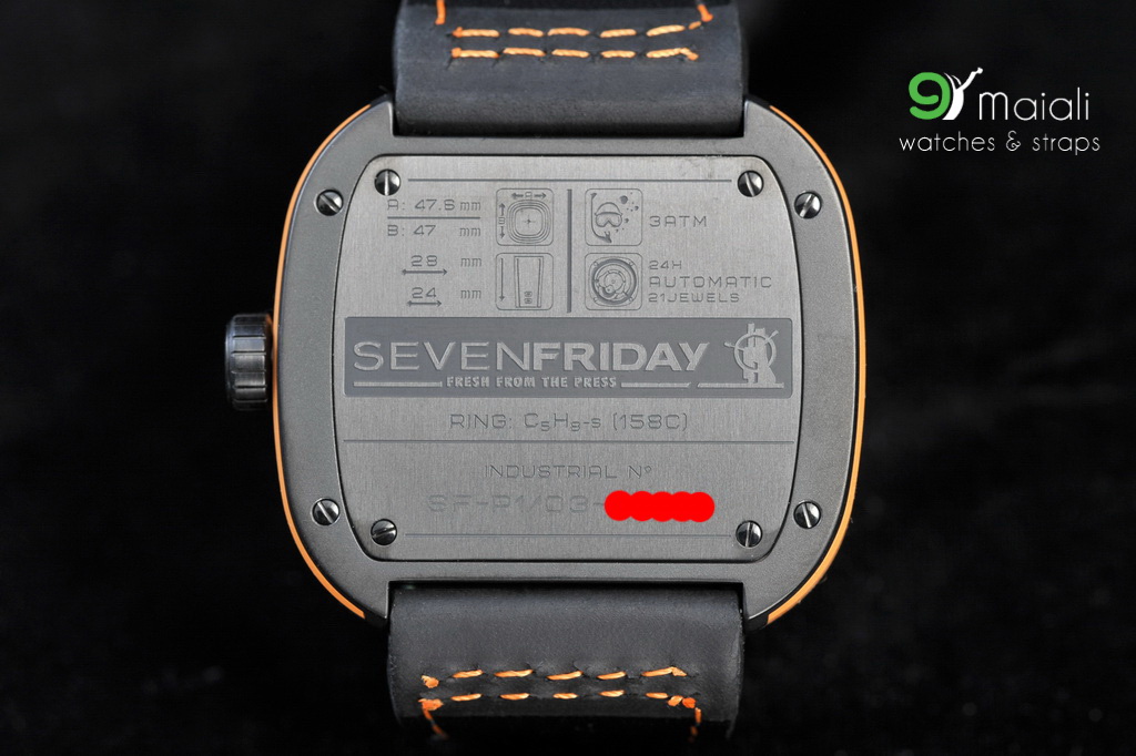 SevenFriday P1/03 Orange & Black PVD 47mm