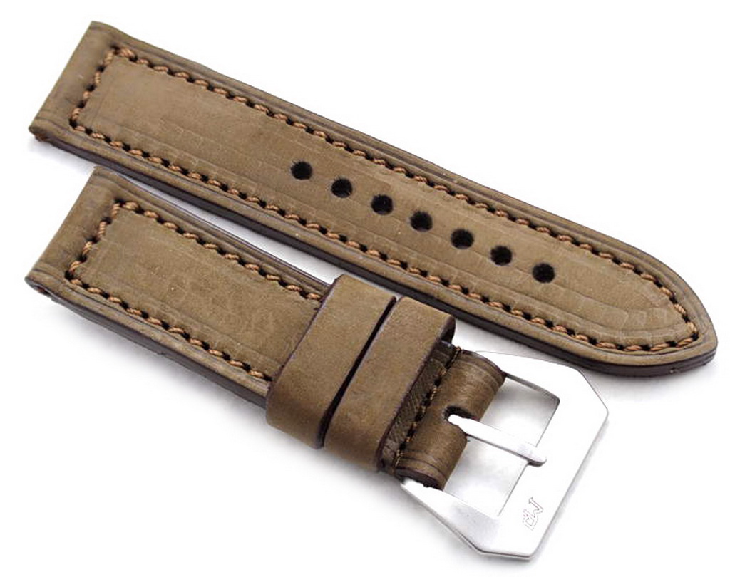 Mario Paci XVI Nubuck Kodiak in Brown with sewn in MP New natural Pre-V Buckle *NEW*(The Original OEM strapmaker for Panerai from 1938 to 1997)
